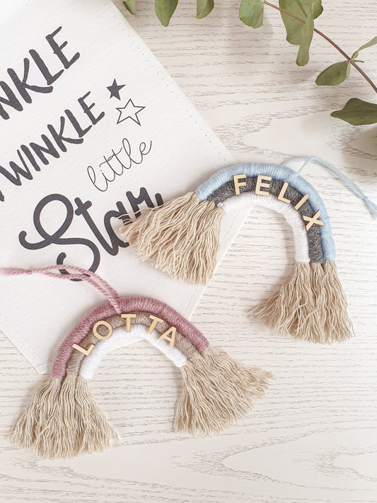Makramee Regenbogen Girlande 'Chubby' mit Name, Farbwahl