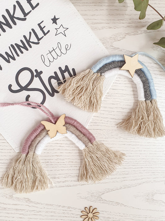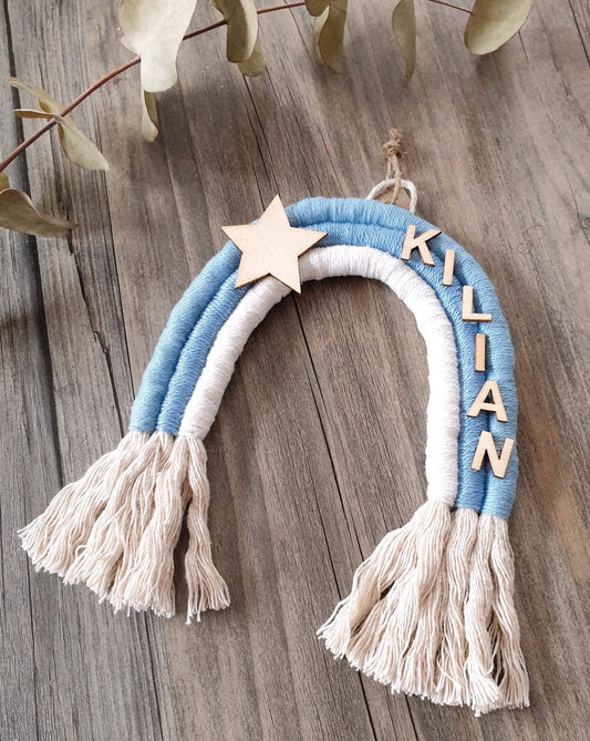 Makramee Regenbogen klein mit Name, Farbwahl