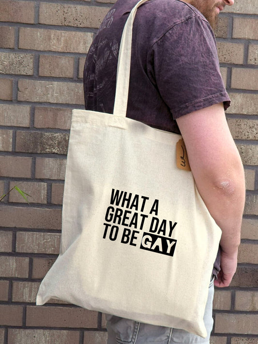 Baumwolltasche "what a great day to be gay"