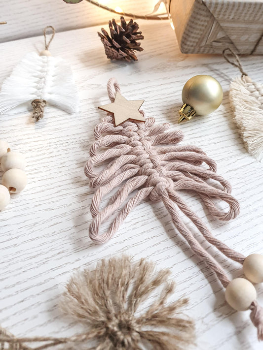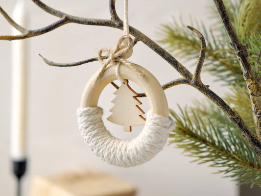 Makramee Baumschmuck-Anhänger Set mit Holz-Tannenbaum 2tlg.